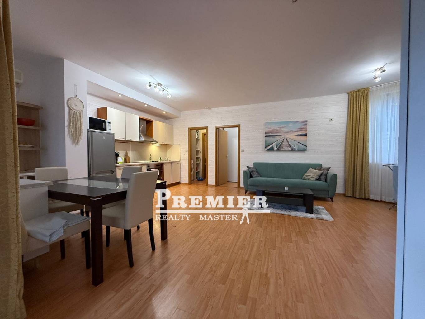 Планировка: просторная гостиная с кухонным уголком и столовой, спальня, ванная с туалетом, прачечная и балкон.