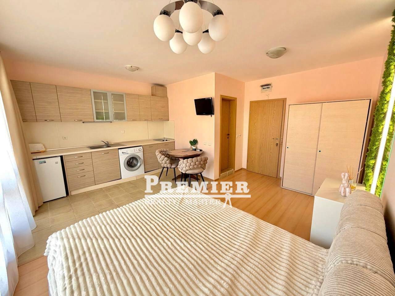 Предлагаем на продажу стильную и современную студию в северной части курорта Солнечный Берег. Недвижимость расположена в тихом и спокойном месте, в очень ухоженном комплексе с красивыми помещениями общего пользования, ухоженным садом, бассейном и детским уголком. Студия расположена на 4 этаже(не последнем ), полностью меблирована необходимой мебелью и техникой, готова к проживанию. .Подходит для круглогодичного проживания или летнего отдыха. АКТ 16. Без комиссии для покупателя.